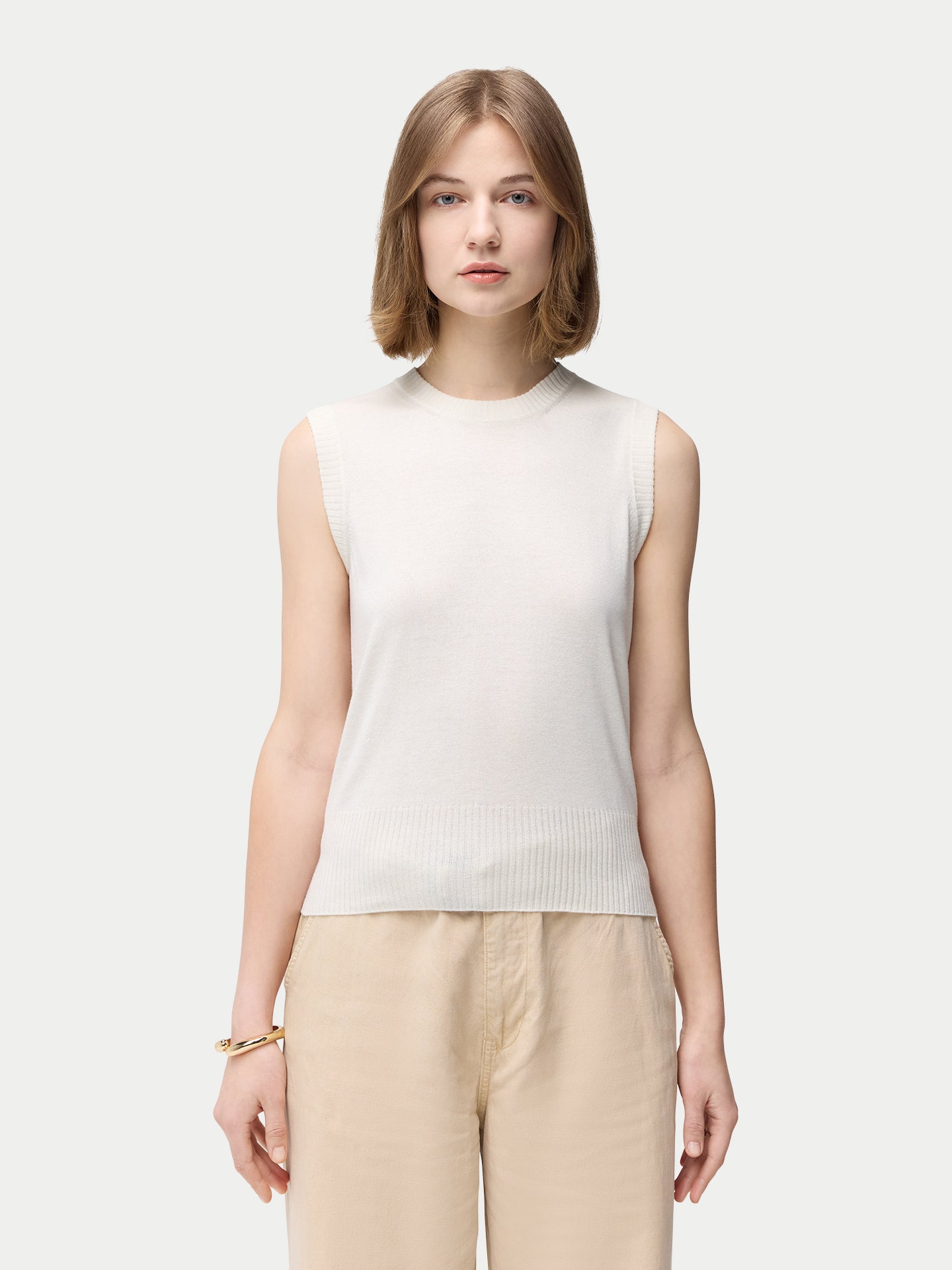 • Women's Cashmere Silk Sleeveless Top Whisper White - Gobi Cashmere