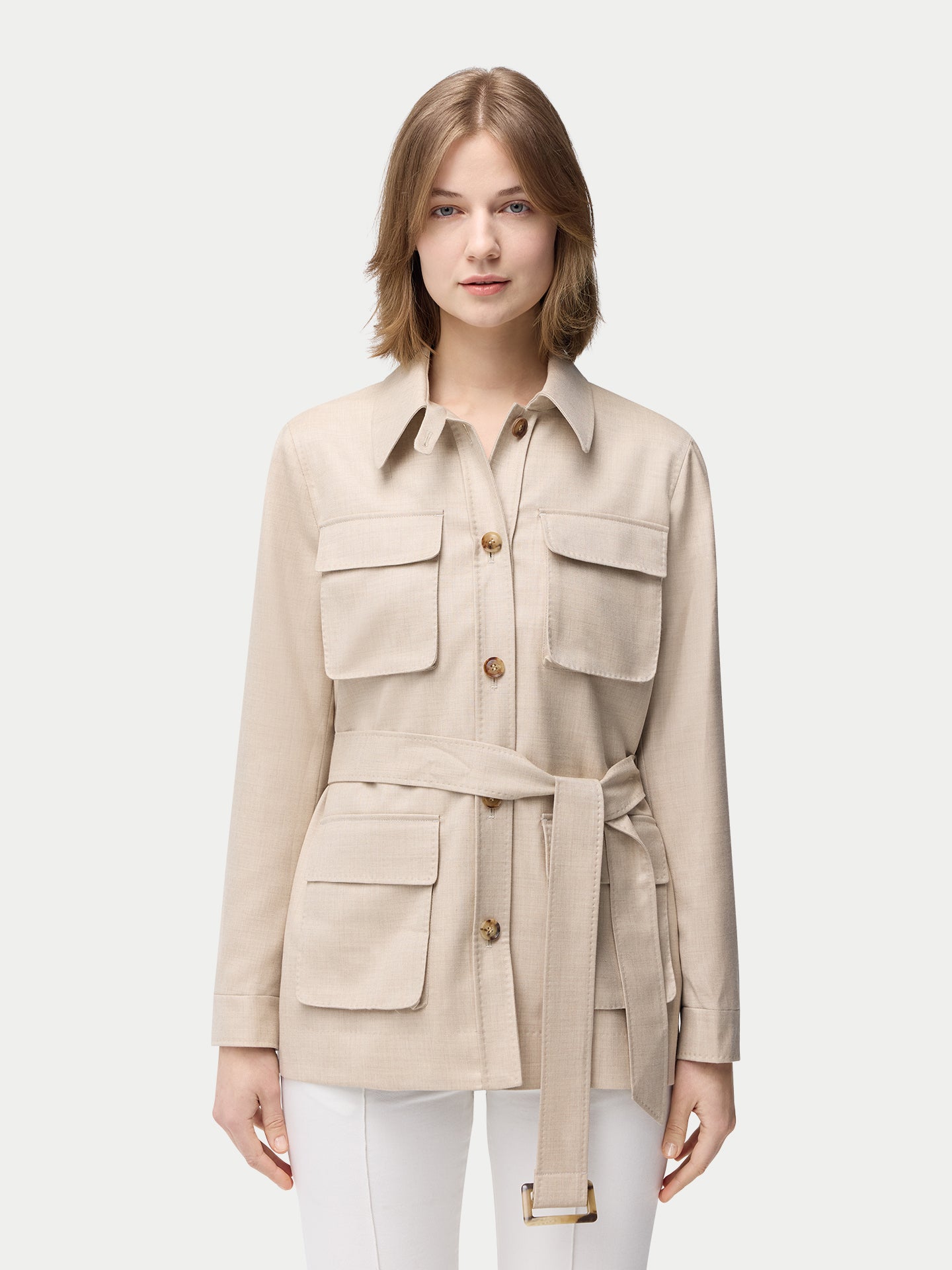 Organic Colour Belted Cashmere Safari Jacket