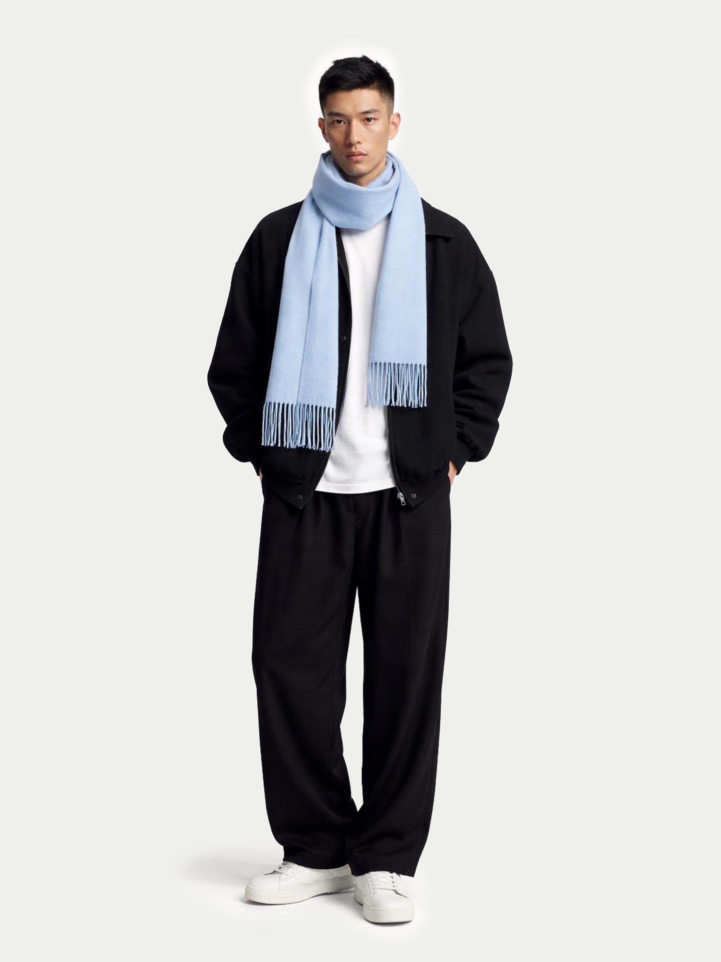 • Unisex Cashmere Fringed Scarf Light Blue - Gobi Cashmere