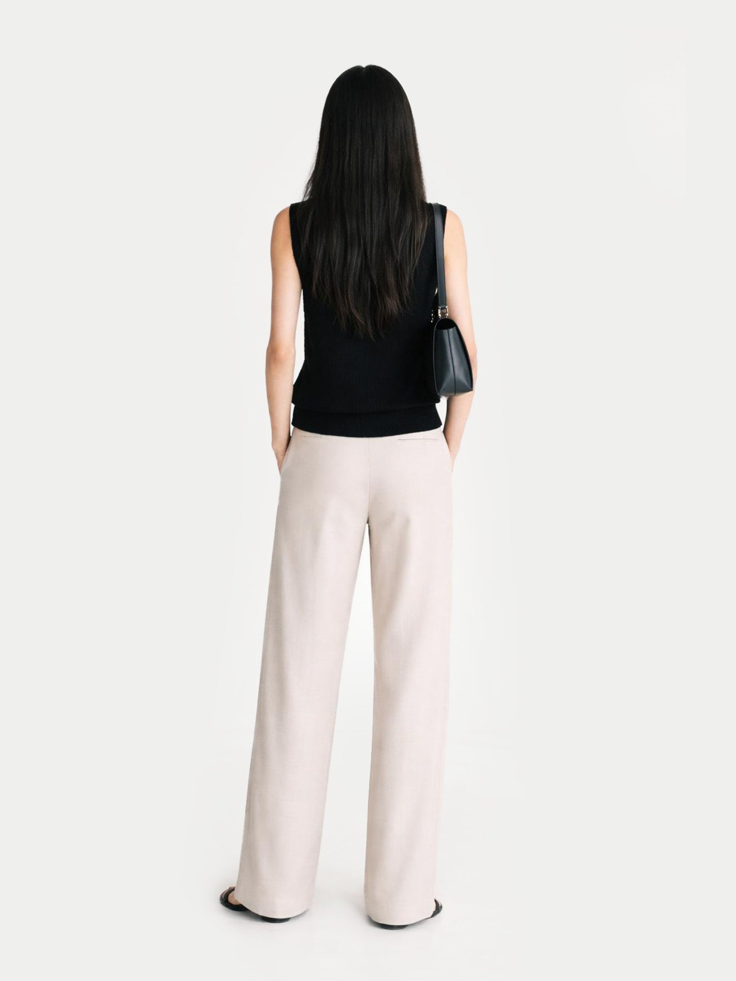 Il gilet girocollo da donna è sapientemente filato in cashmere mongolo, una fibra celebrata per la sua tradizione, morbidezza e calore. Con una silhouette pulita e moderna, si indossa facilmente sopra camicie o abiti, aggiungendo un tocco di raffinatezza senza tempo sia ai look casual che a quelli più eleganti.