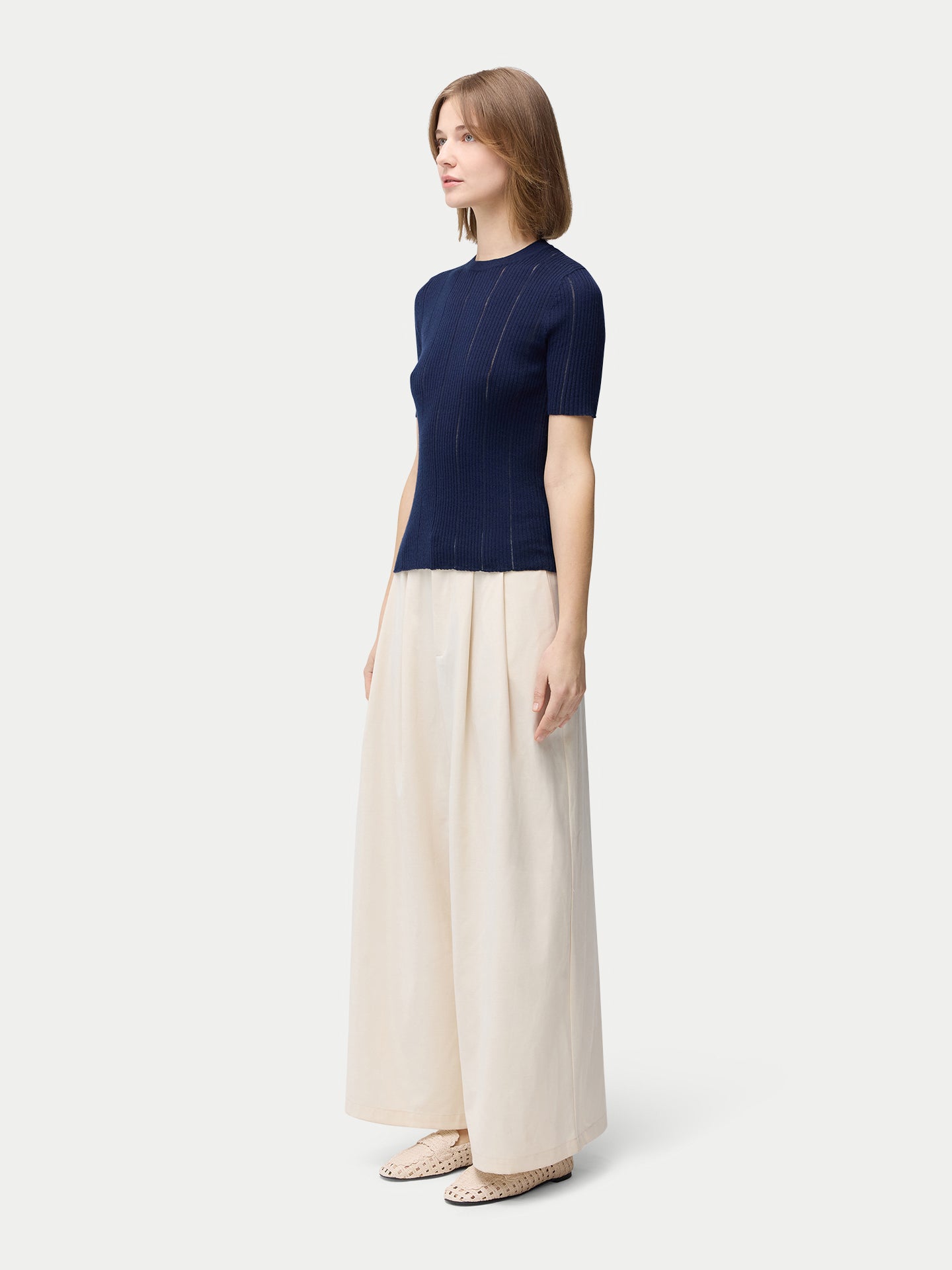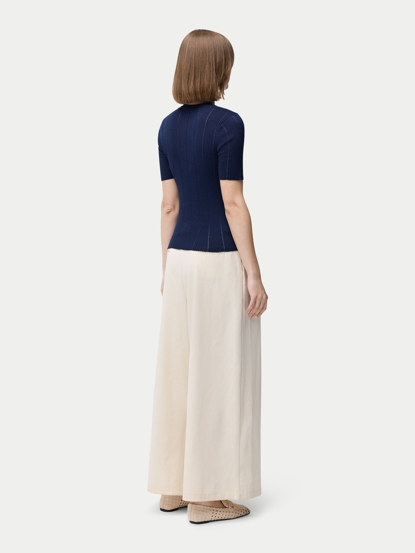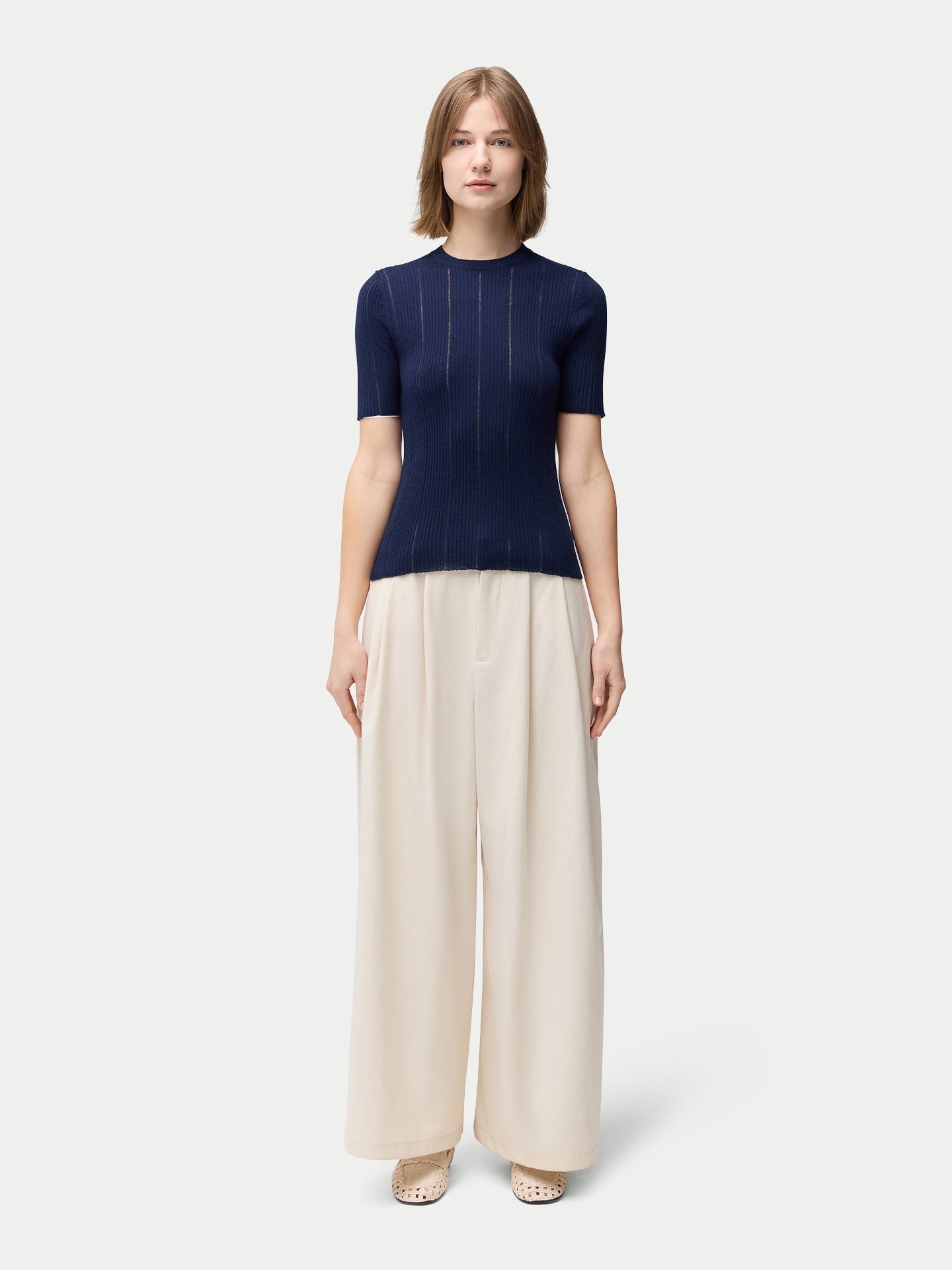 The exquisite blend of 70% cashmere and 30% silk ensures a divine softness and a luxurious feel against your skin. The ajour-knit top can add a femminie, airy feel, making the top versatile for various outfit, from casual daywear to chic evening looks.