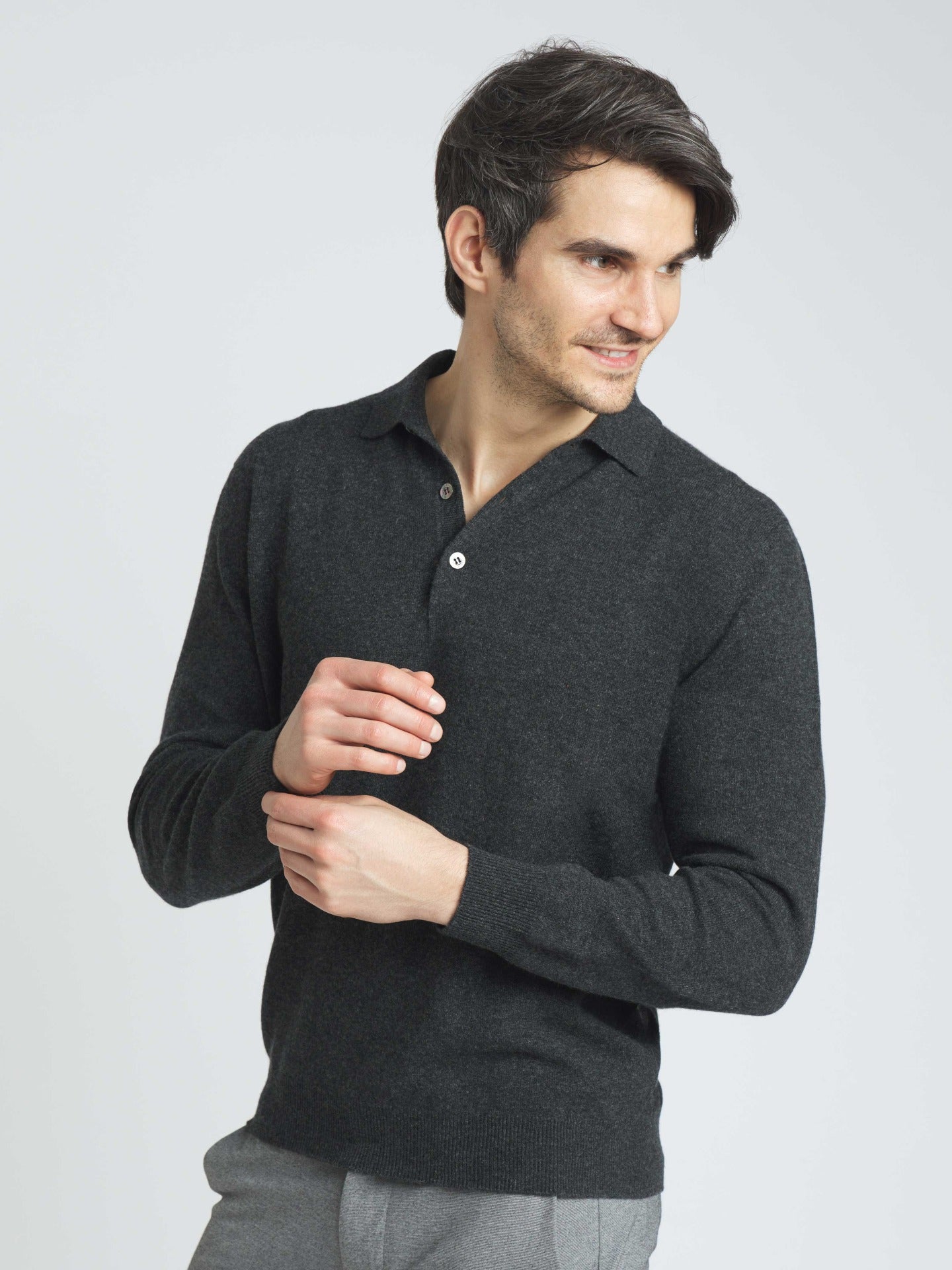 • Men's Cashmere Polo Sweater Charcoal - Gobi Cashmere
