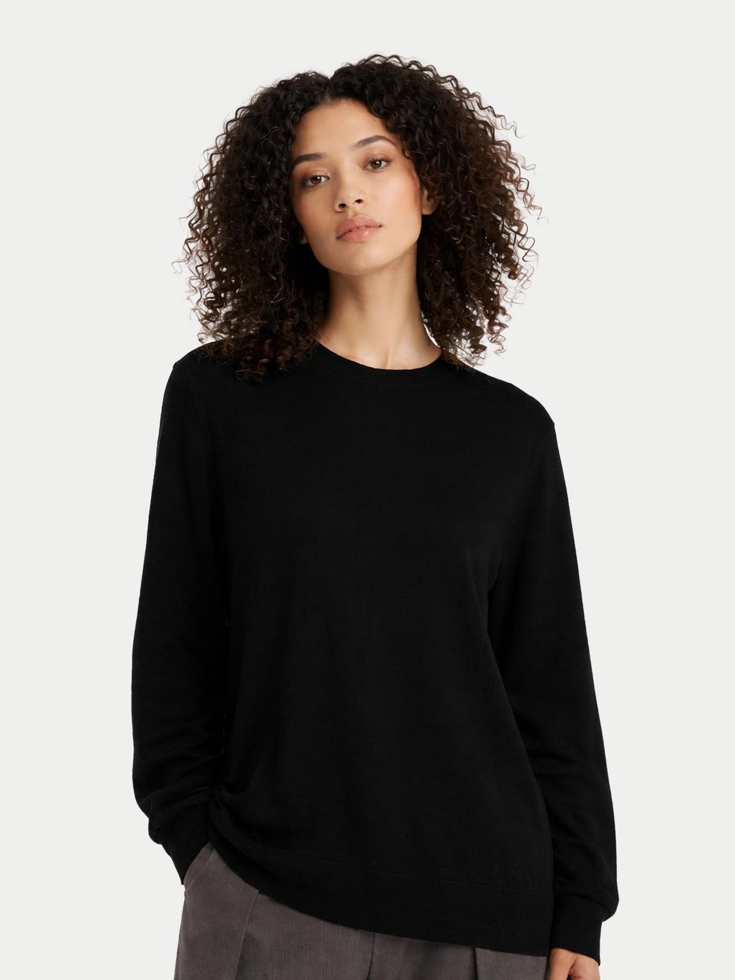 • Women C-Neck  Cashmere Sweater Black - Gobi Cashmere