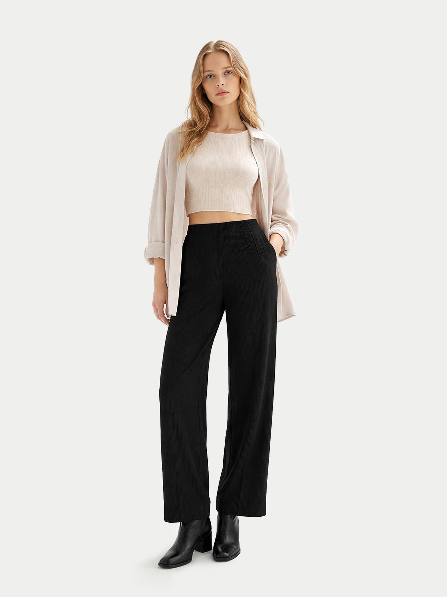 • Women's Organic Cashmere Crop Top Off White - Gobi Cashmere