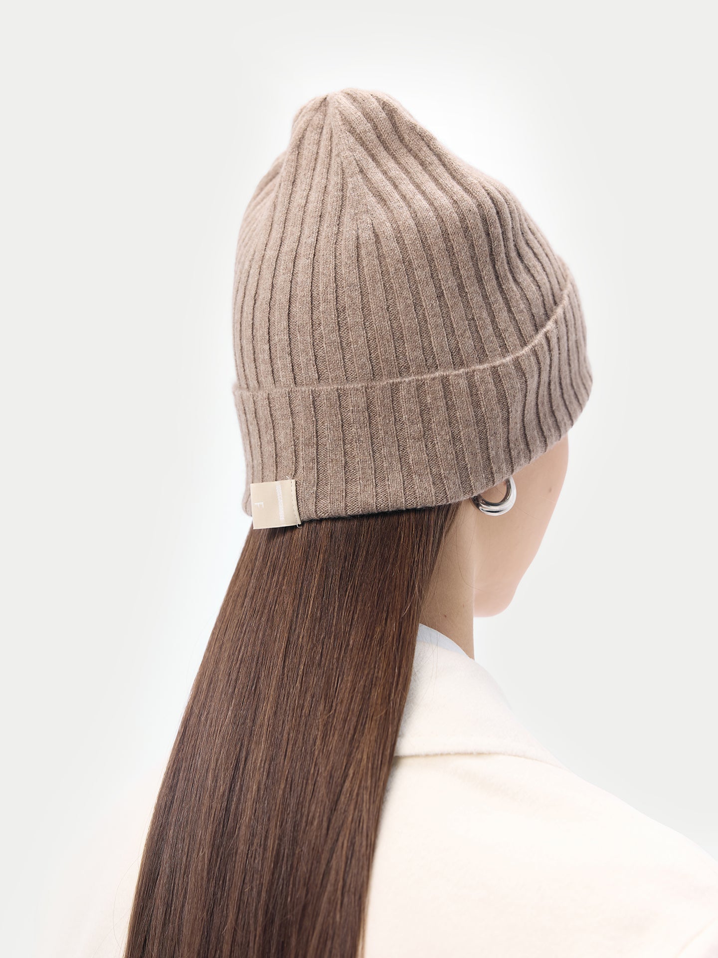 • Unisex Organic Cashmere Rib Knit Hat Taupe - Gobi Cashmere