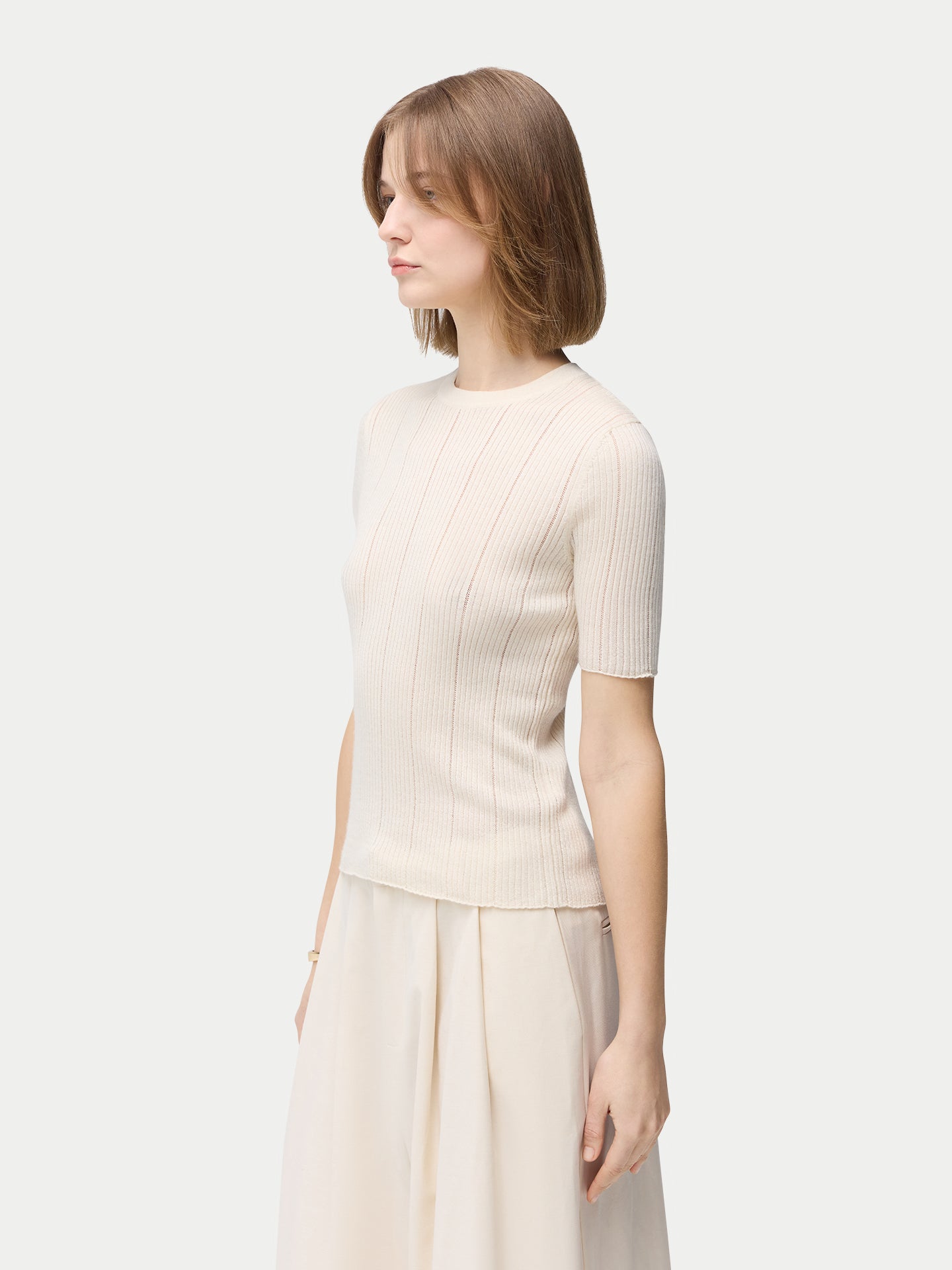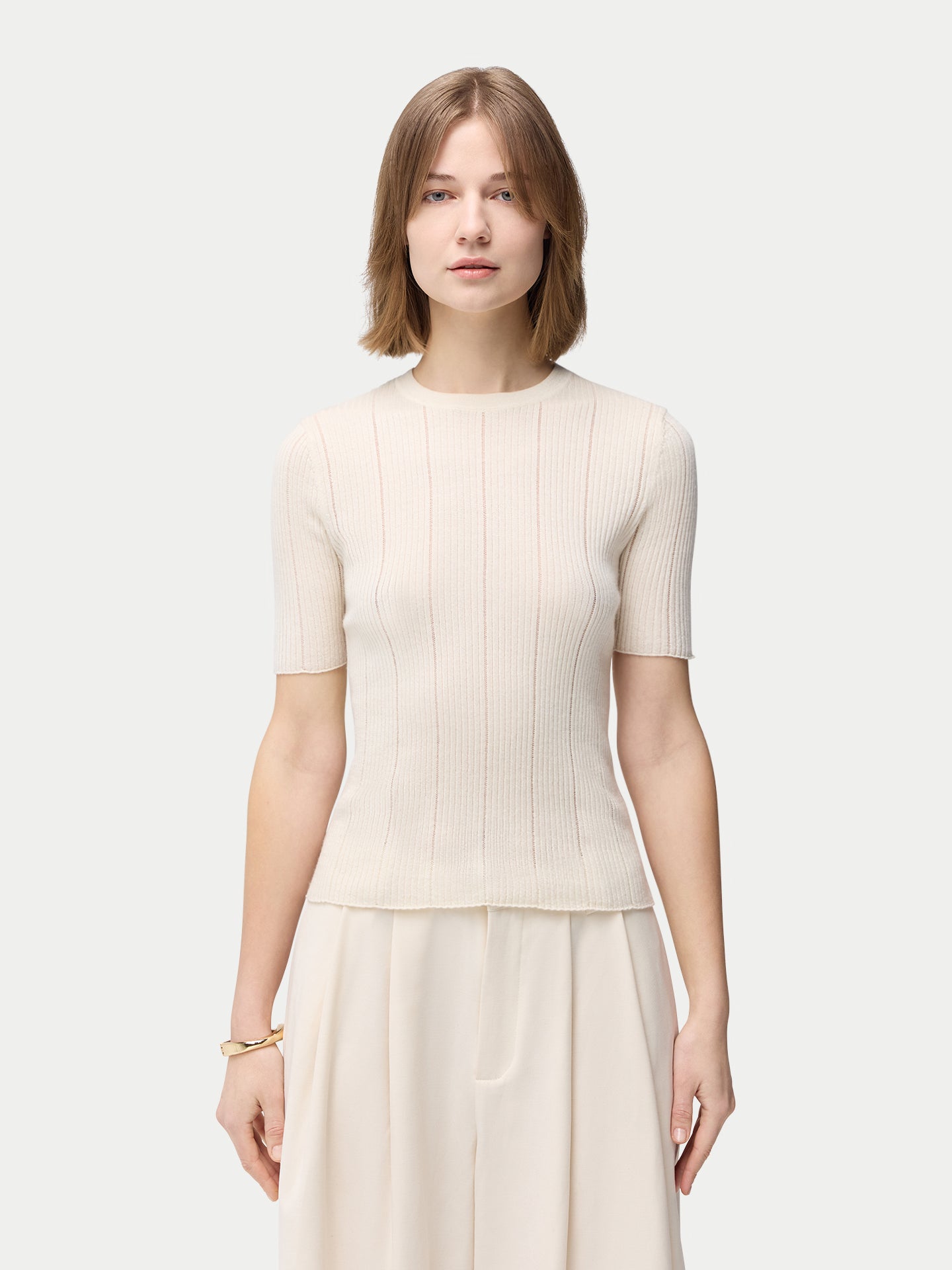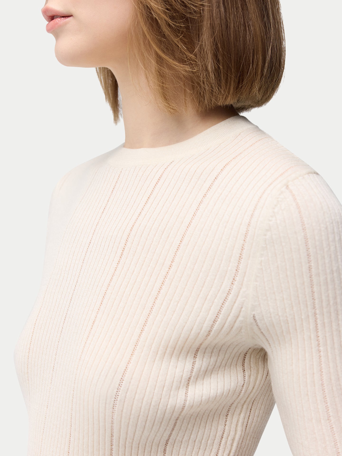 • Women's Lace-Knit Cashmere Silk Top Whisper White | GOBI Cashmere