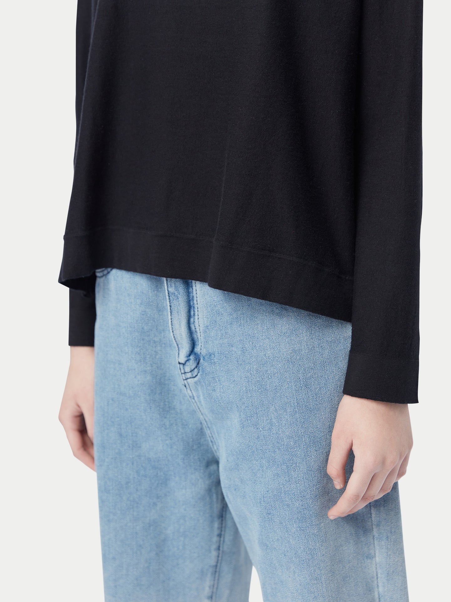 • Women's Boatneck Cotton Silk Cashmere Blend Sweater Black - Gobi Cashmere