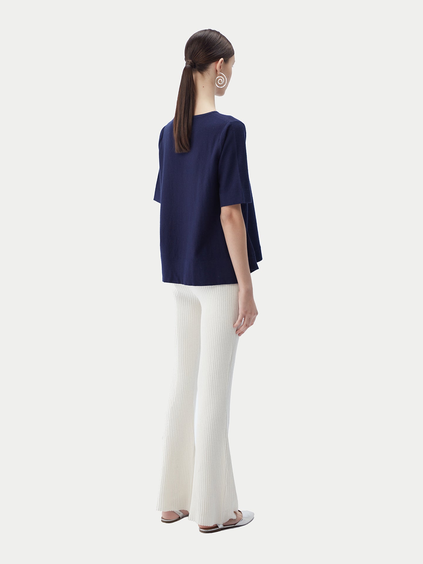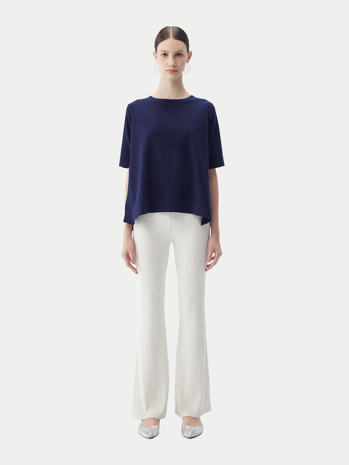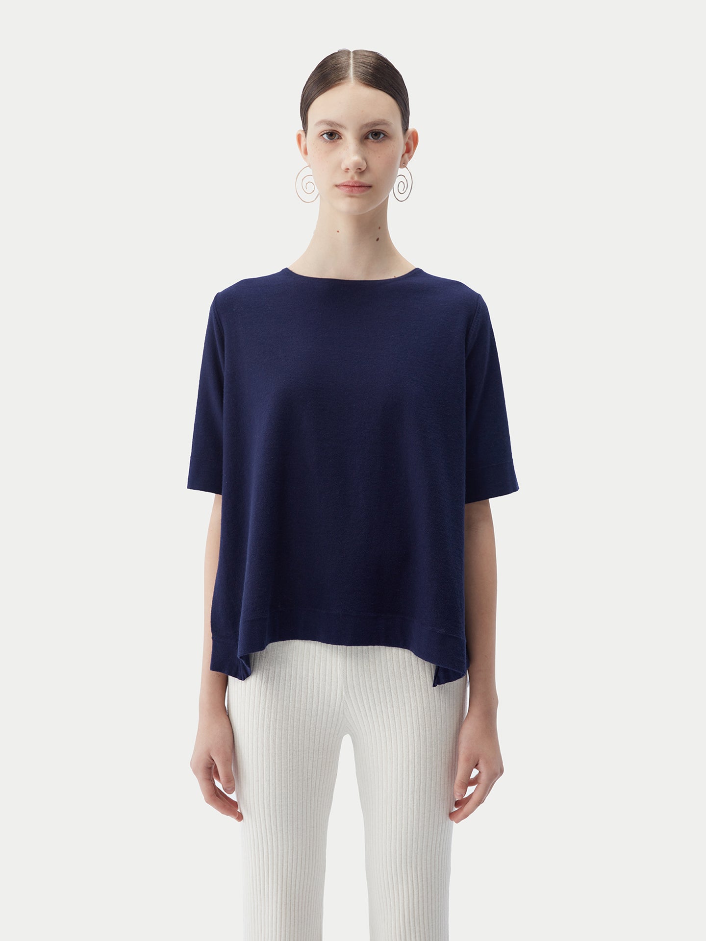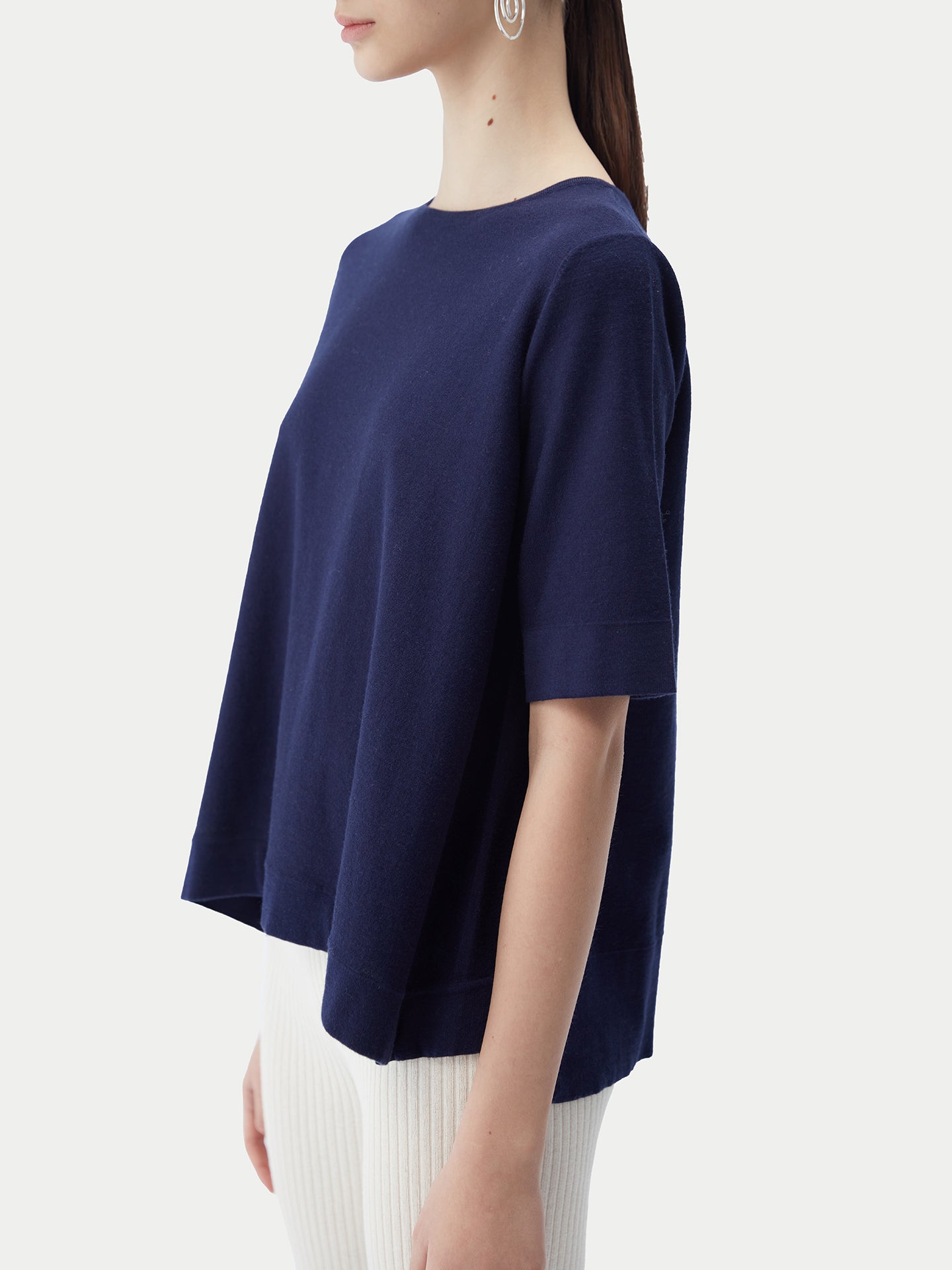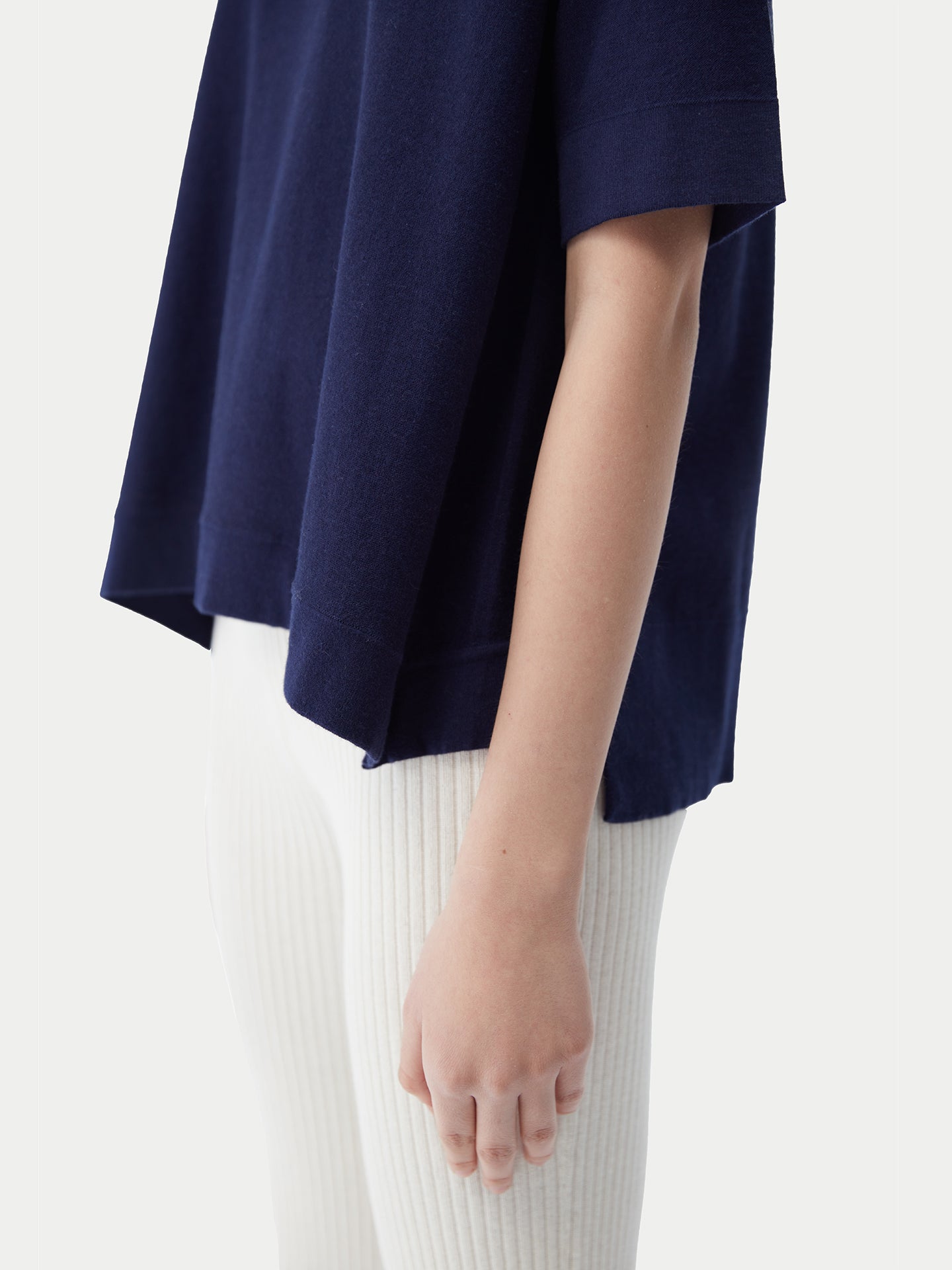• Women's Box-Cut Cotton Silk Cashmere Blend T-Shirt Navy - Gobi Cashmere