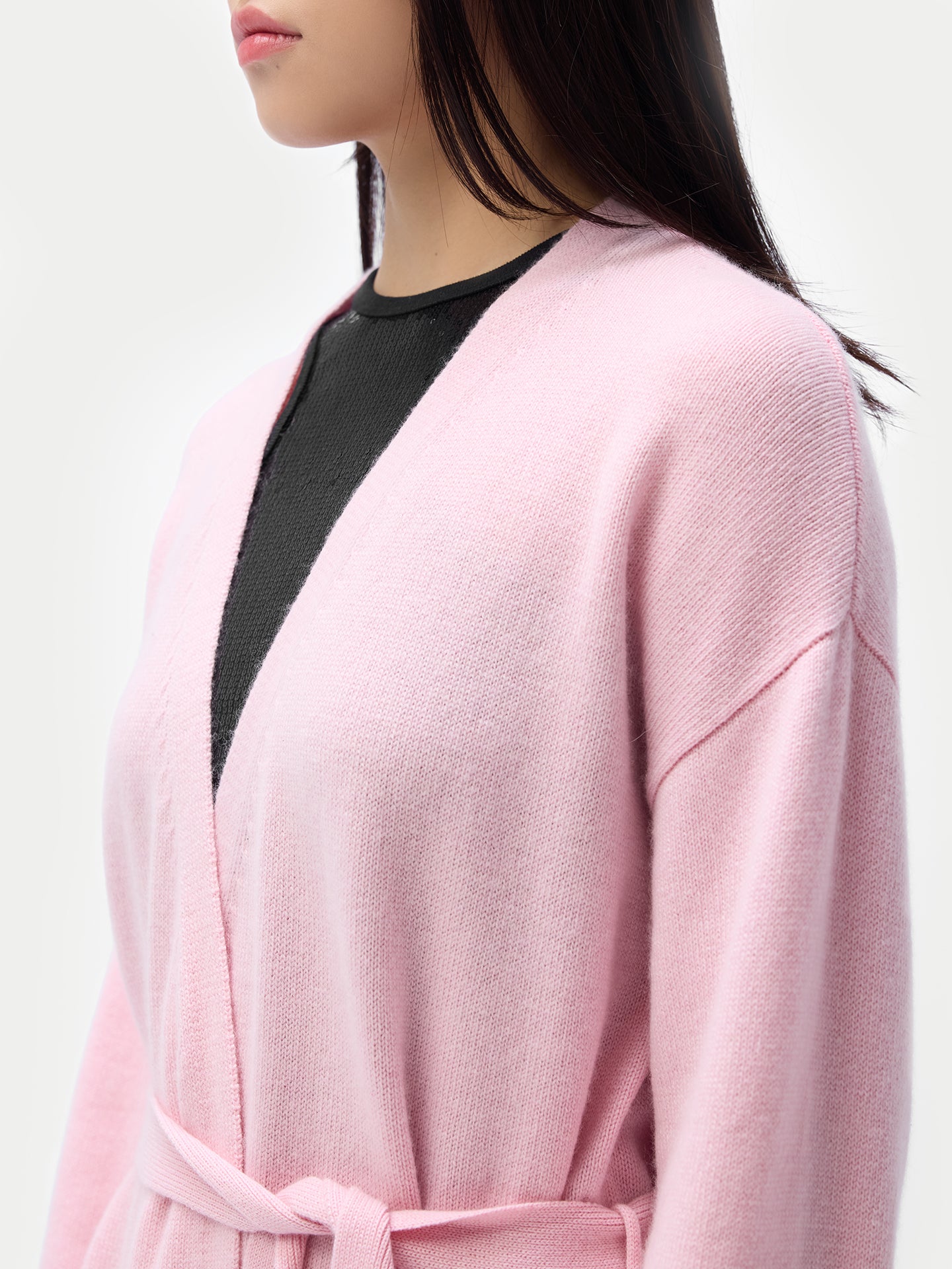 Our maternity robe is crafted from lightweight and warm cashmere, offering a relaxed fit that does not restrict movement. It features a modifable belt loop, making it suitable for wear during all stages of pregnancy and postpartum. Its versatile design ensures comfort and style for everyday use.