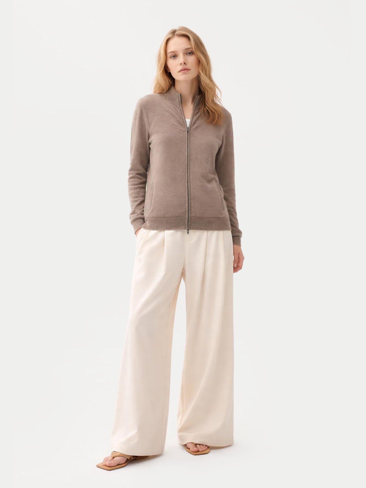 • Women's Cashmere Full-Zip Cardigan Taupe - Gobi Cashmere