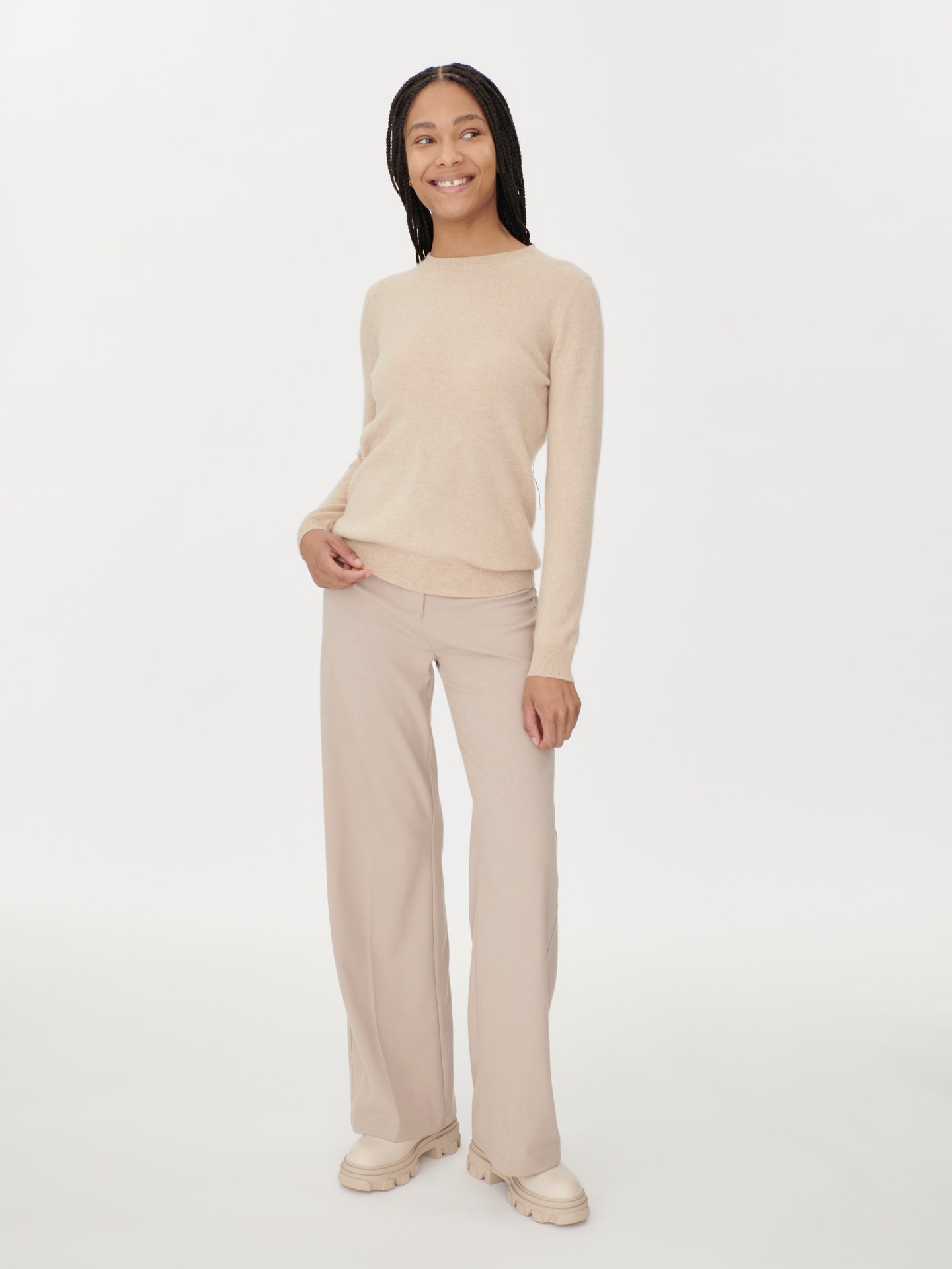 Базовый свитер с круглым вырезом из кашемира натурального цвета