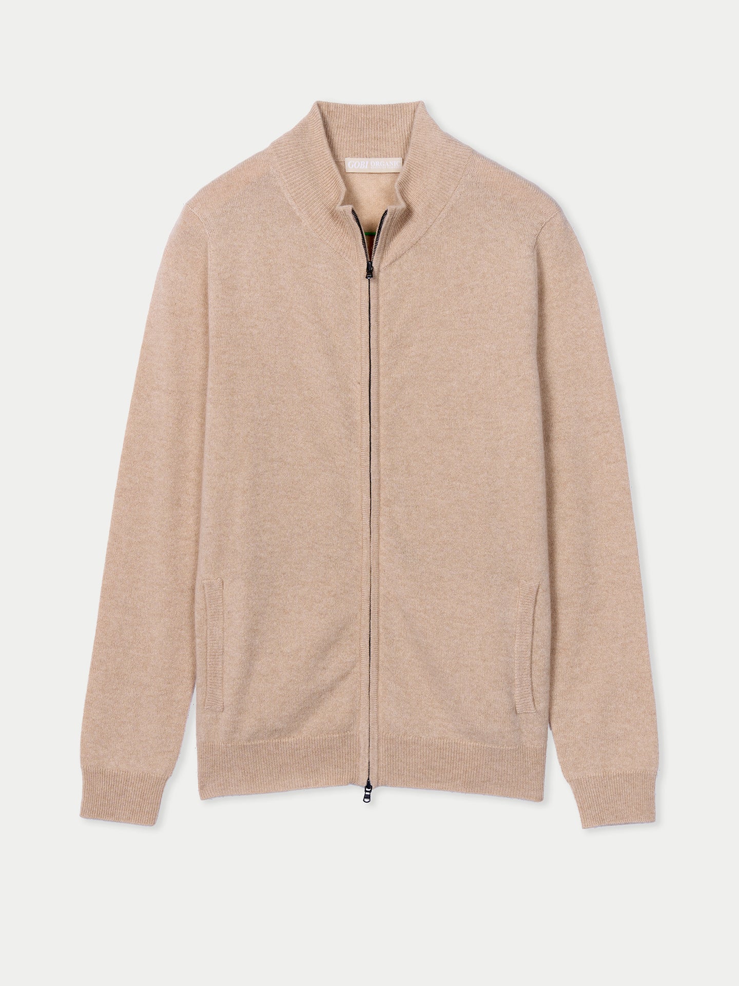 • Women's Cashmere Zip Cardigan Beige- Gobi Cashmere